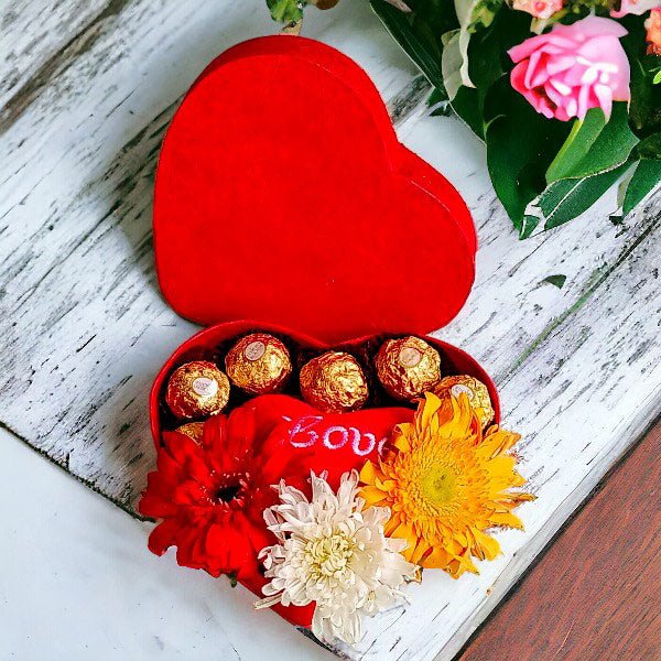 Complete your expression of love with a thoughtful touch with a mini love cushion paired with delicious chocolates and flowers. This delightful combination adds a special touch to your heartfelt message.