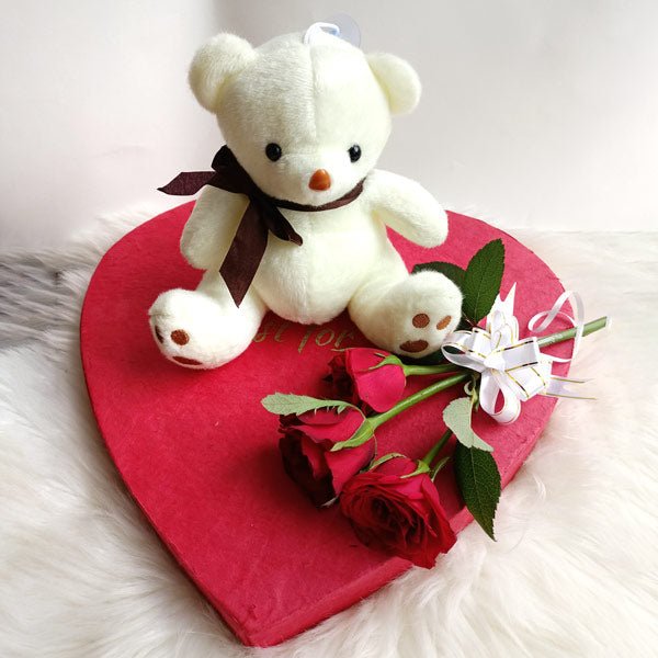 Opt for a heartfelt gesture with our Cute Teddy Bear paired with 3 Red Roses. Simple yet profound, it's the perfect choice to express your love through FTN.