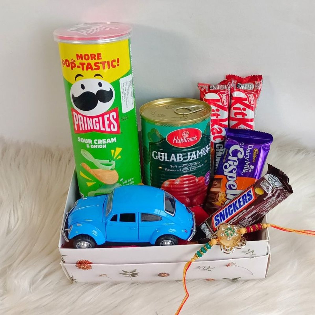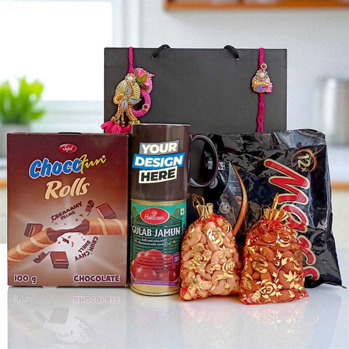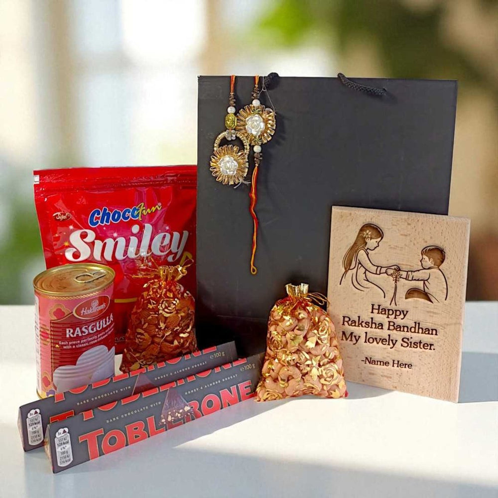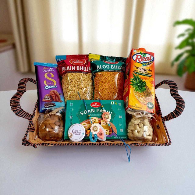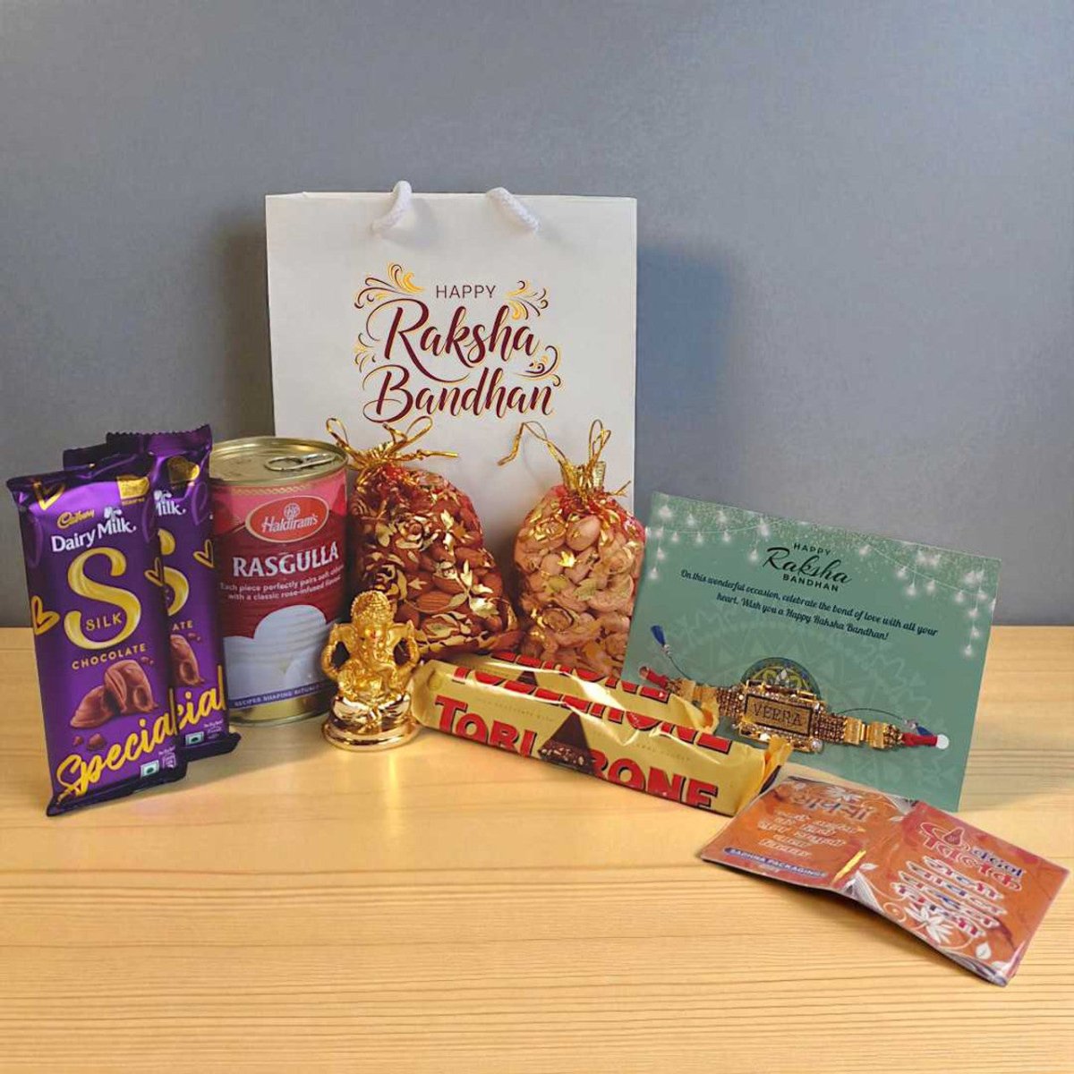 For an extra touch of luxury, elevate the celebration with our "Cadbury Silk Chocolates with Kangan Gift Set." This sophisticated pairing merges the richness of Cadbury Silk chocolates with the elegance of a kangan, creating a truly special gift.