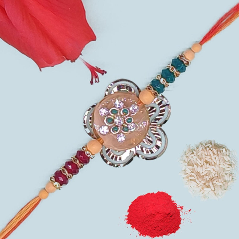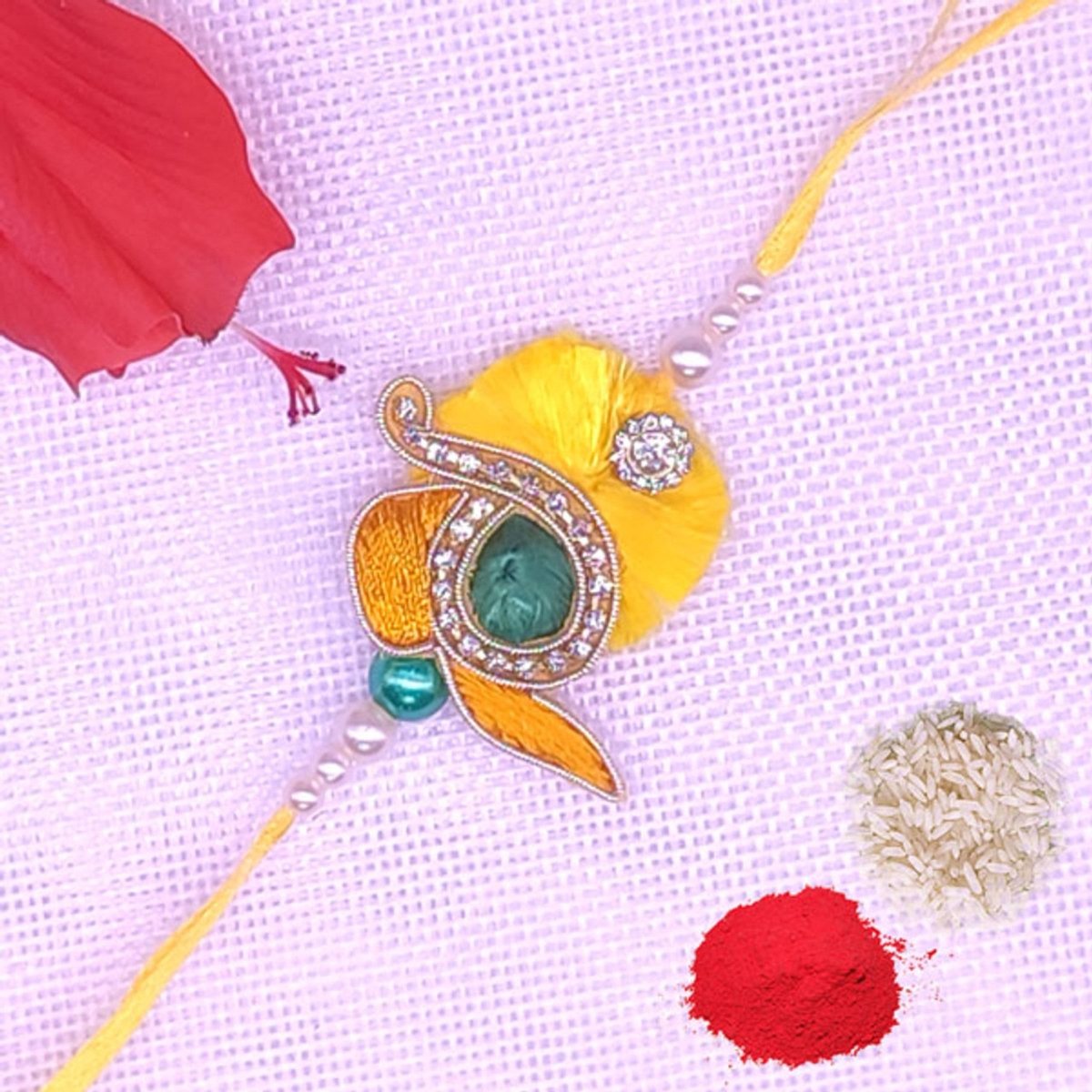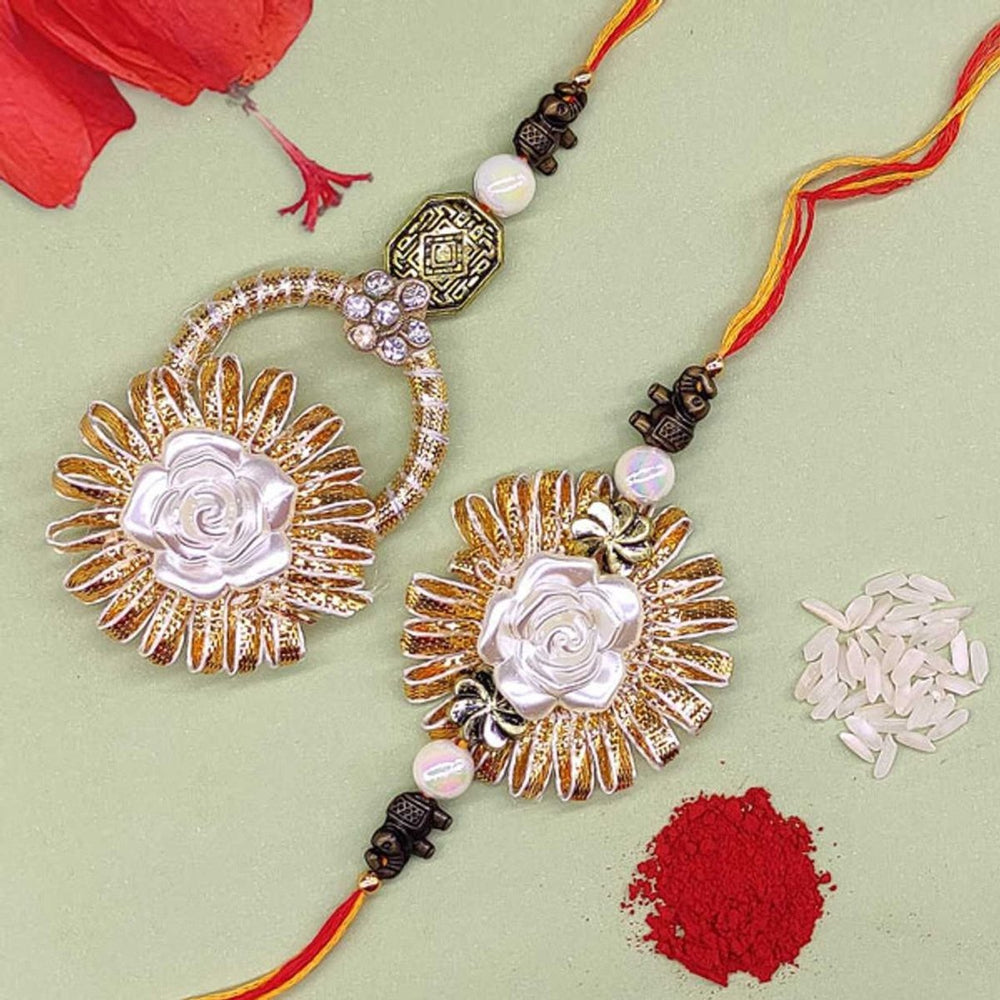 Create a sensory experience with our "Beautiful Rakhi Set with Candle and Rose Combo." This delightful fusion of festive elements and fragrant blooms adds a touch of elegance to the celebration.